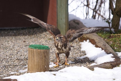 Accipiter, Farbdimorphismus und -polymorphismus sind häufig. Bis auf wenige Ausnahmen sind Bussarde wenig spezialisierte Jäger von Kleinsäugern (besonders Mäuse) und Vögeln. Zu ihrem Speiseplan zählen aber auch Regenwürmer, Insekten, Reptilien und Aas. Ihre Beute schlagen sie fast immer am Boden. Entweder stürzen sie sich von einem Ansitz auf sie, oder sie gehen vom Segelflug und kurzem Rüttelflug (bei Mäuse- und Raufußbussard) in den Sturzflug über. |